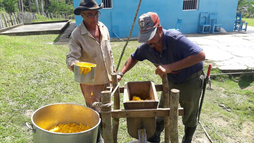 Además de trabajar en los sembrados de maíz, yuca y malanga, Milagro y Berto venden a los turistas tarros de jugo de mango y limonada a un dólar.