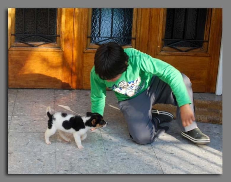 “Persistencia infantil mata racionalidad materna. Así que me puse en contacto con la persona que había rescatado a los cachorros y fuimos a verlos. El sábado siguiente emprendimos la expedición con el GPS orientado al sur y conocimos a los cinco pequeños. Habían crecido en un balcón terraza con vista a la avenida, jugando a la lucha grecorromana entre ellos sin límites maternos ni de ninguna otra índole. Eso sí, bien alimentados y socializados con la nutrida clientela del centro de belleza que la mujer que los había encontrado tenía en pleno centro de Bernal”.