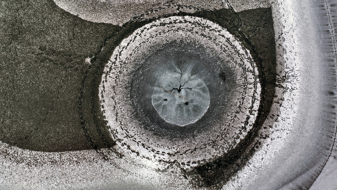 El medio compartió increíbles imágenes del círculo helado captadas con drones, que otros medios locales denominaron "agujero negro" congelado.