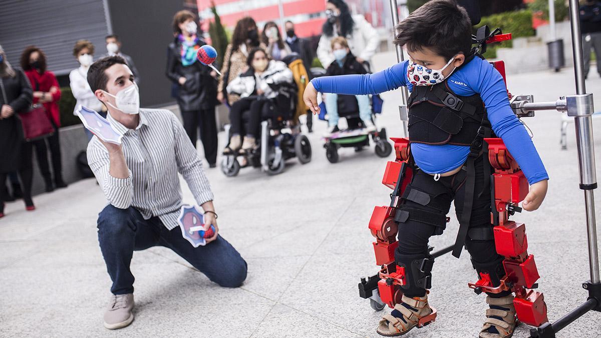 Durante el acto, Víctor, un niño de 6 años que padece AME ha hecho una demostración de cómo funciona uno de estos exoesqueletos. Ayudado por dos de sus terapeutas, se ha enfundado el exoesqueleto y ha mostrado algunos de los ejercicios que realiza habitualmente, como lanzar pelotas a unas dianas o combatir con espadas de juguete frente a uno de ellos. “Ahora tenemos un gran reto por delante: democratizar el exoesqueleto. Que todos los niños con afectación de la marcha puedan sentir esa sensación, que puedan tener una oportunidad de tener una mejor calidad de vida. Tenemos que lograr que ninguna familia se pierda esto”, ha comentado García Armada.